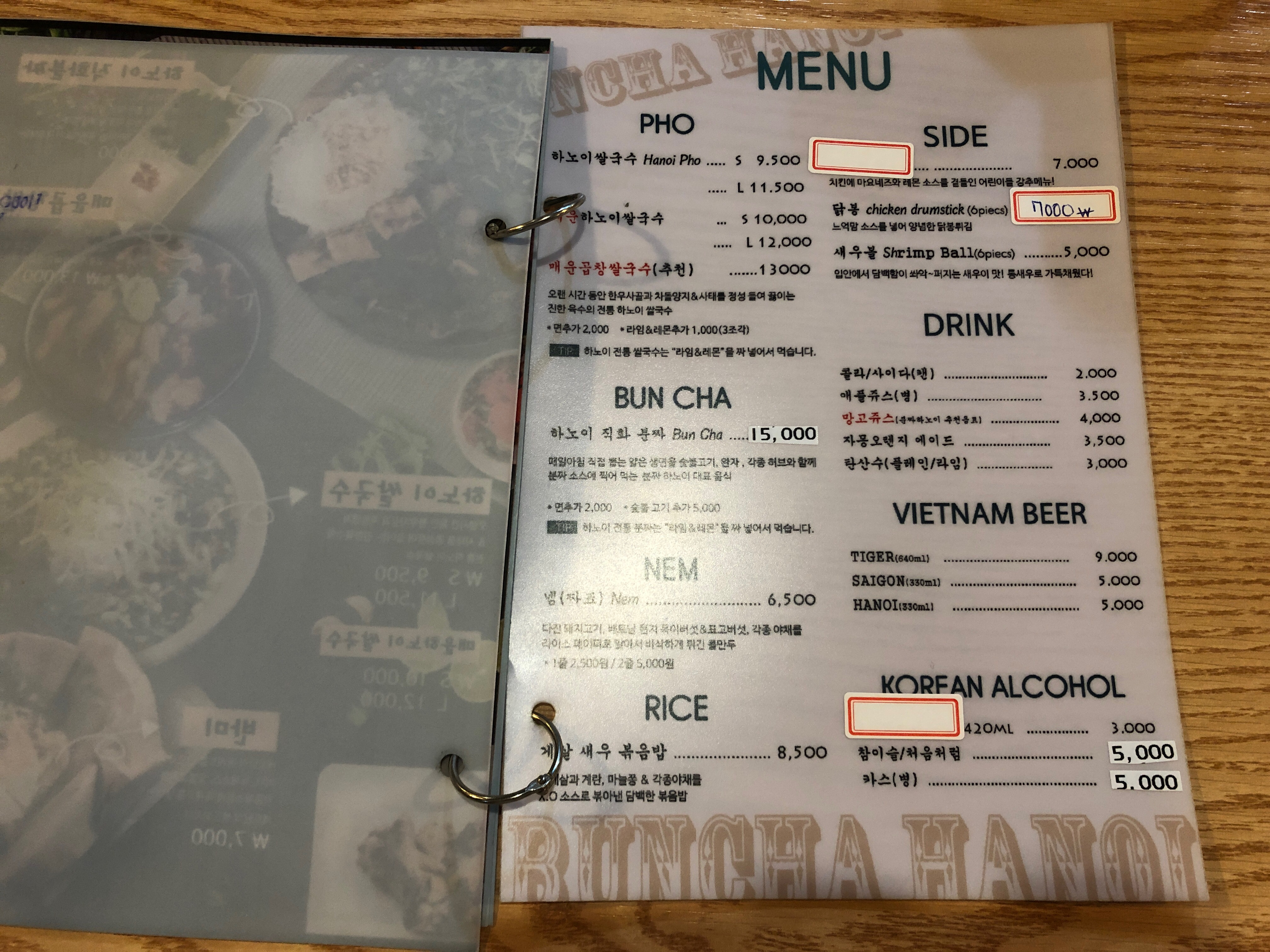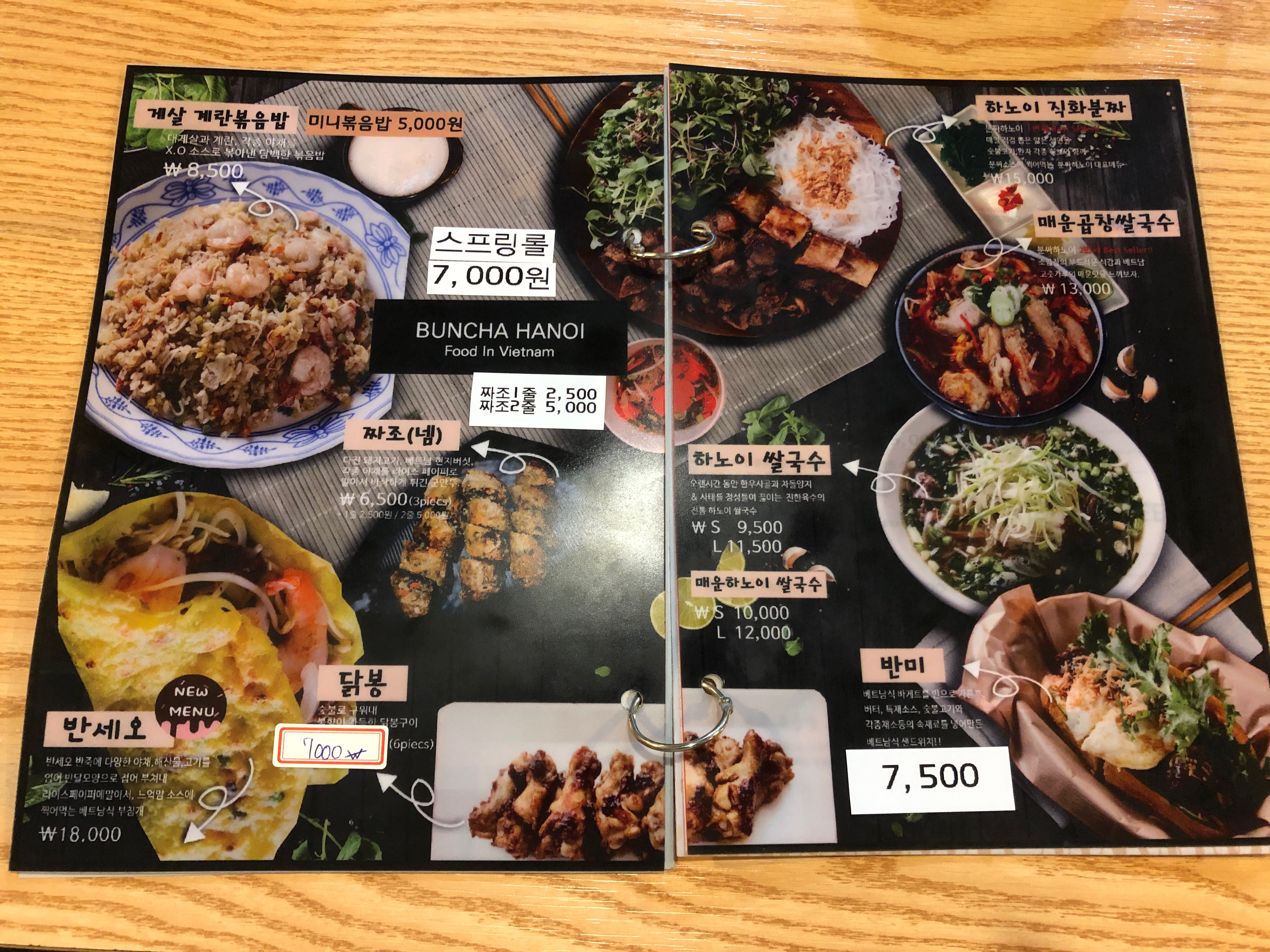 메뉴가 한 페이지 밖에 없기도 하고 어차피 쌀국수 먹으러 온거라 ‘하노이 쌀국수’를 주문했다.